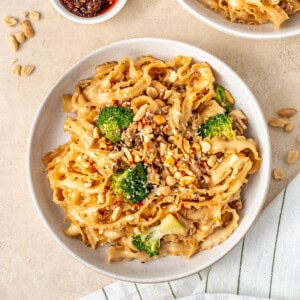 Store leftovers in an airtight container in the fridge for up to 3 days. Reheat in a frying pan or microwave until hot. I don’t recommend freezing these noodles.