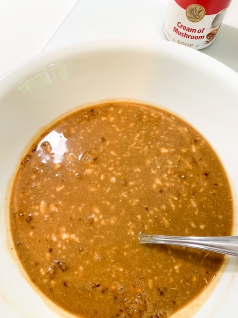 - 1 (10.5 oz.) can Campbell’s Gluten-Free Cream of Mushroom Soup