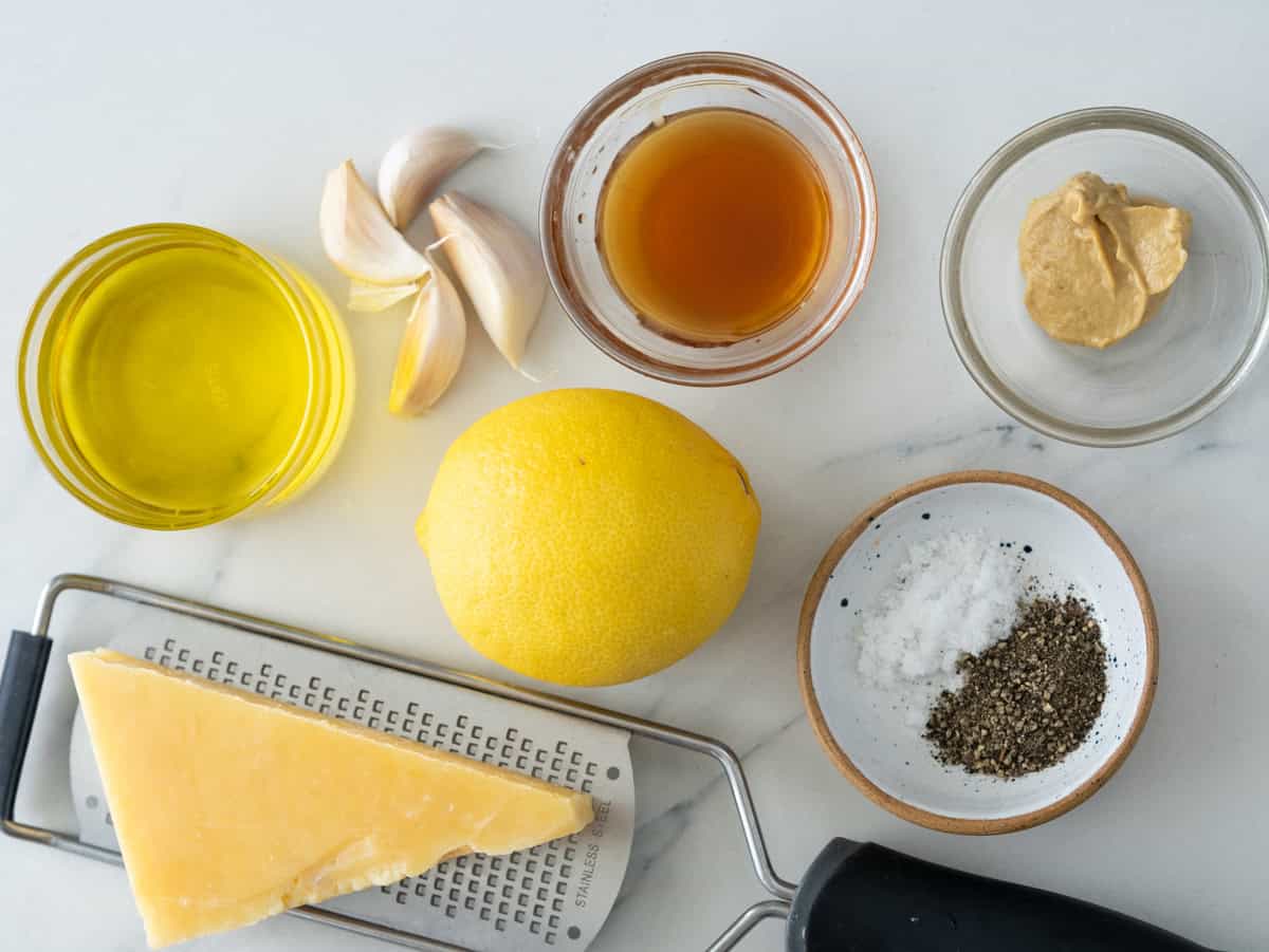 - Lemon juice – Fresh lemon juice for a tangy fresh dressing.