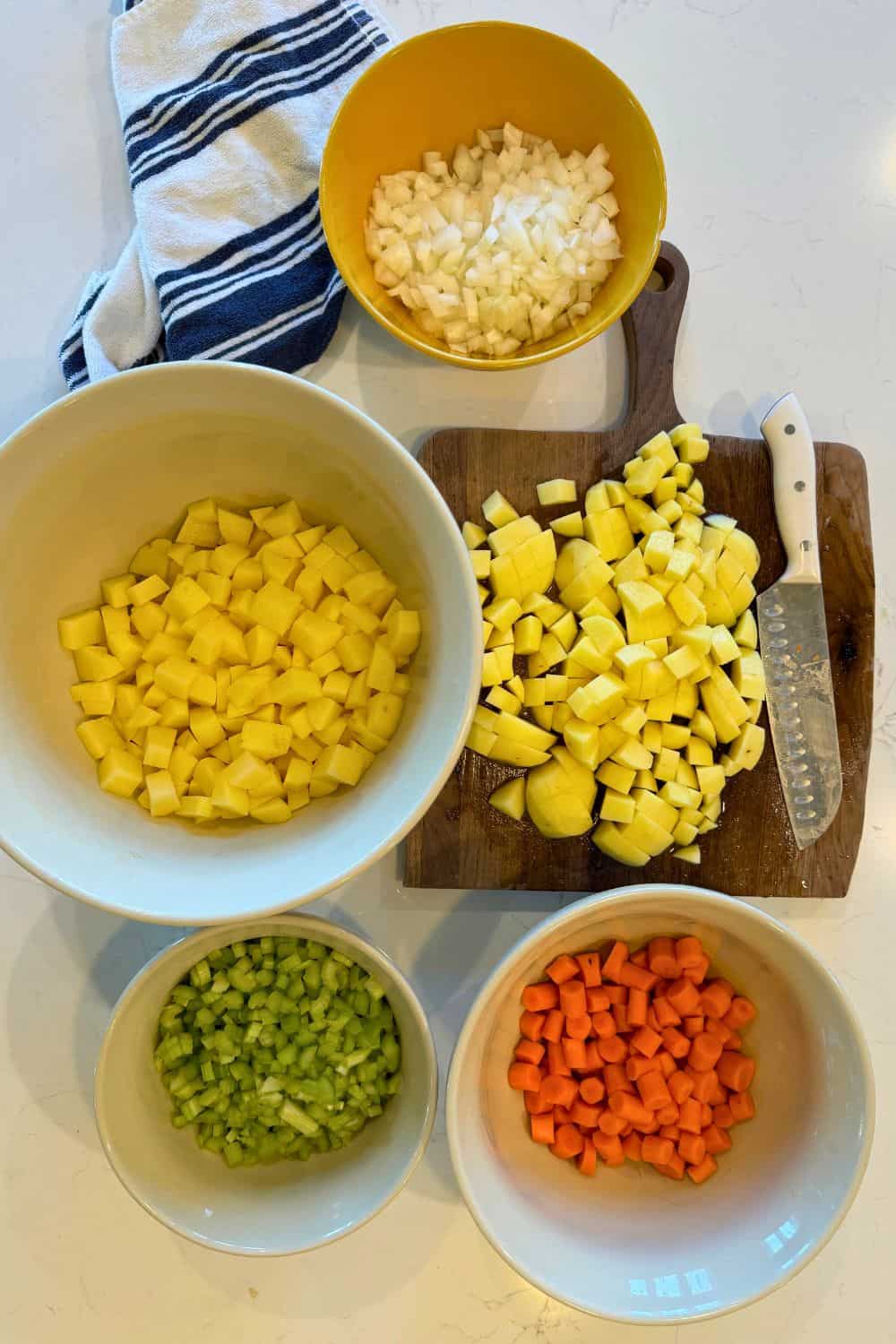 - Carrots, Peeled and Chopped (5 cups): Carrots bring a touch of sweetness and color. Like the potatoes, they’re firm enough to withstand the canning process without turning to mush.
