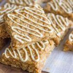I poured the whole batch into a parchment paper lined baking dish, and then let them chill so they’d be easy to pop out of the dish and cut into squares. We love them chilled rather than at room temperature, and I actually think they taste like a really yummy maple fudge packed with oats.