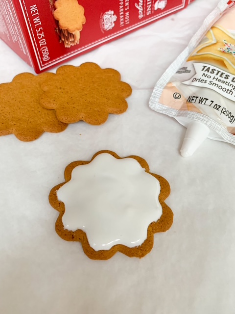 - Pipe white candy cookie icing in the center of the cookie.