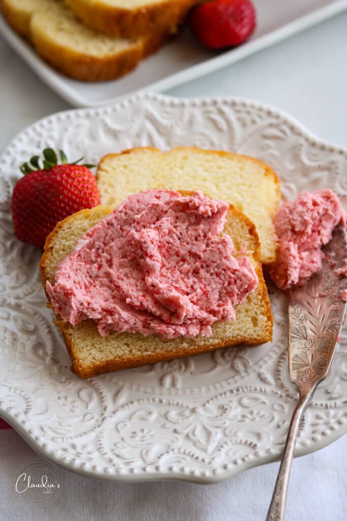 Strawberry butter slathered on warm pound cake