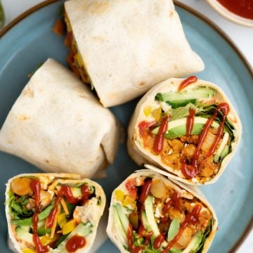 This Veggie wrap with hummus, crispy spicy chickpeas, and an array of veggies is far from boring. This is not only protein-rich, filling but also tastes delicious.