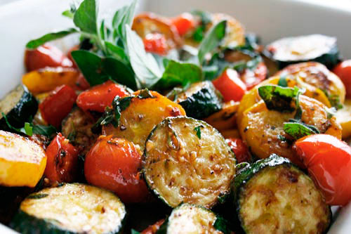 This mix of zucchini, summer squash, cherry tomatoes and fresh herbs was delicious both the day I made it and the next day when I used it in my morning frittata.