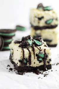 Make sure you get a good brand of cream cheese (like Philadelphia!) and we’re off to the races. In a few hours, you’ll be enjoying the dense and luscious joy of mint oreo cheesecake bars!