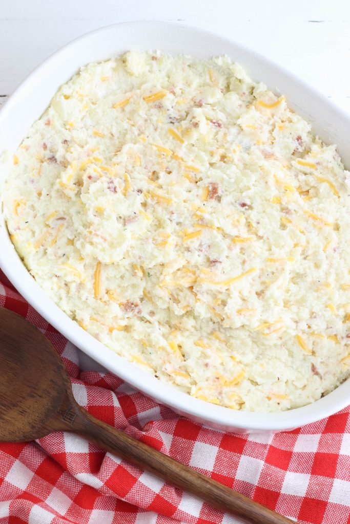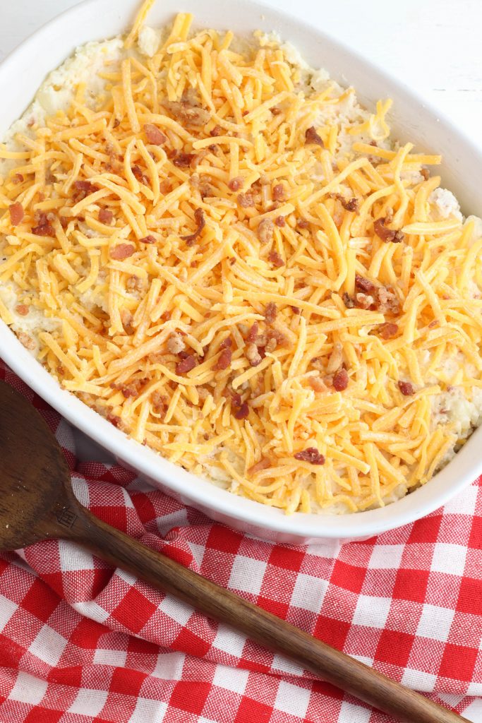 To make this Twice Baked Potato Casserole ahead of time, first prepare it according to the directions below, stopping before the final baking. Then cover it tightly with aluminum foil or plastic wrap and store it in the fridge until you’re ready to bake it.