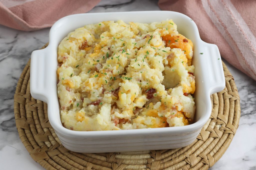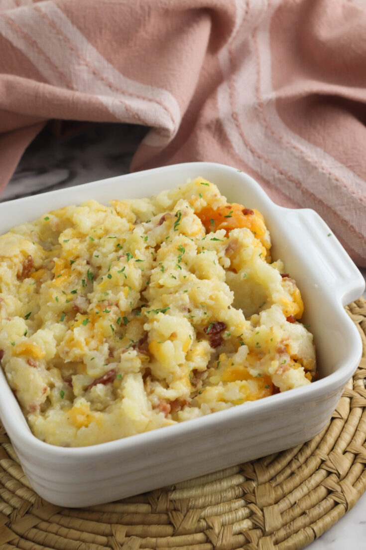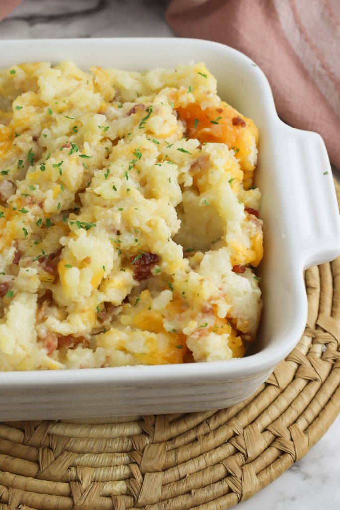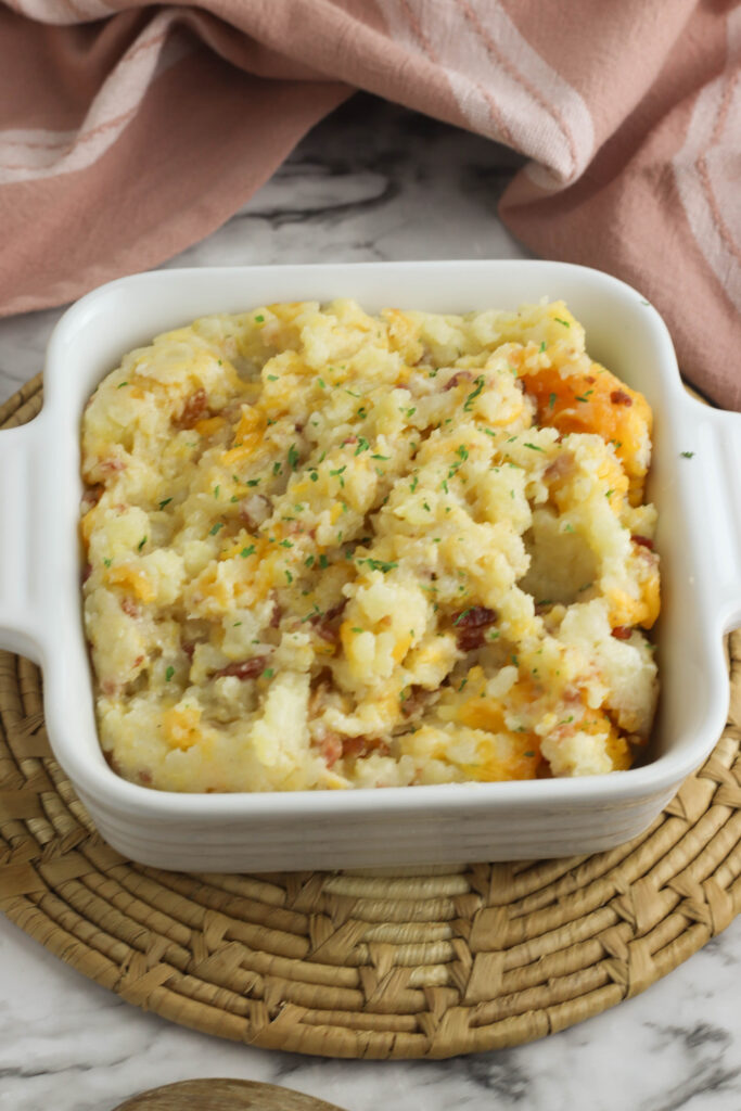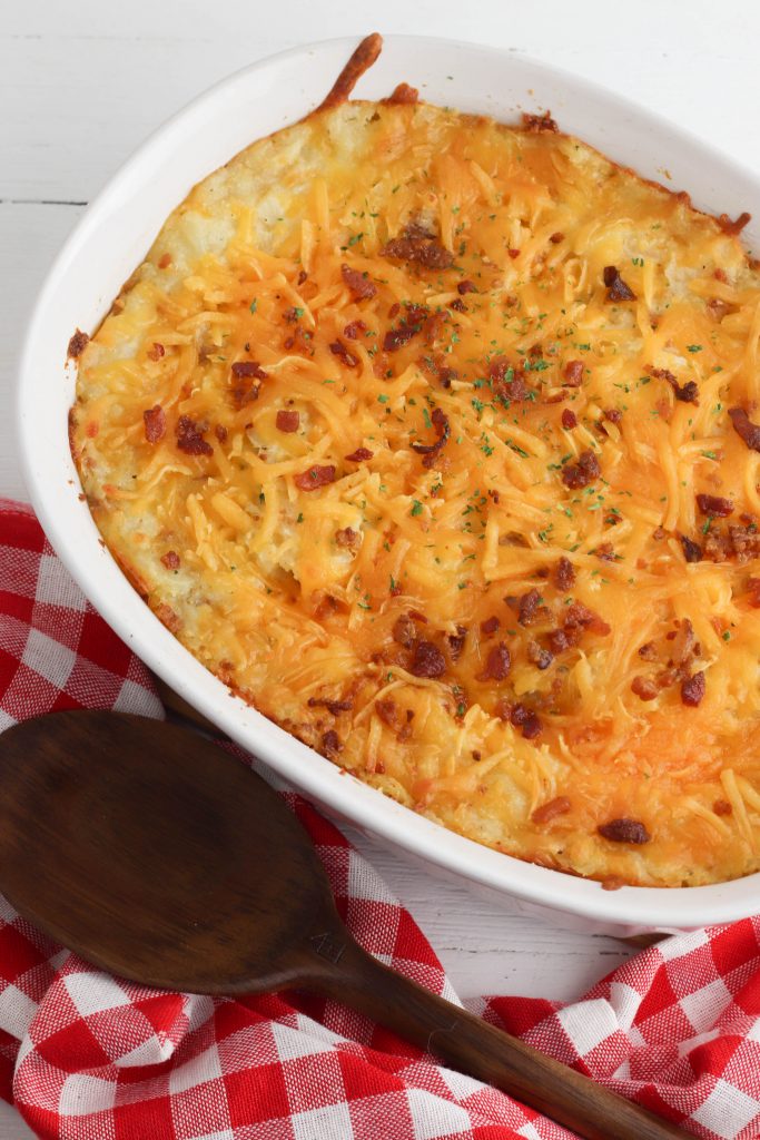This Loaded Twice Baked Potato Casserole recipe is so easy you’ll want to make it all the time! With bacon bits and cheddar cheese- and lots of suggestions on how to customize it to exactly your liking- this will quickly become a family favorite recipe!