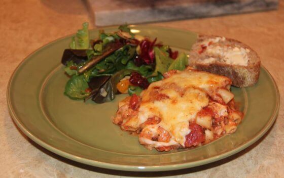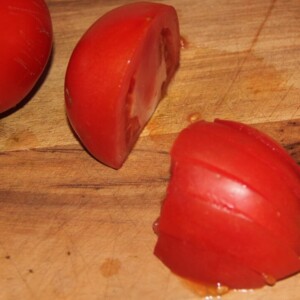 I tried my hand at it a couple of weeks ago and it came out rather tasty. I used fresh tomatoes, although you could probably get away with a couple of cans of diced tomatoes and use the same technique here to crush them. I don’t think canned crushed tomatoes would work because they’re not chunky enough. When you crush the tomatoes yourself, you get the juice out to make the sauce but also have some small tomato pieces left to give it the correct consistency.