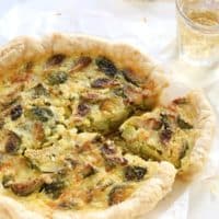 A simple yet elegant wintertime quiche filled with roasted brussels sprouts and sharp gruyere cheese.