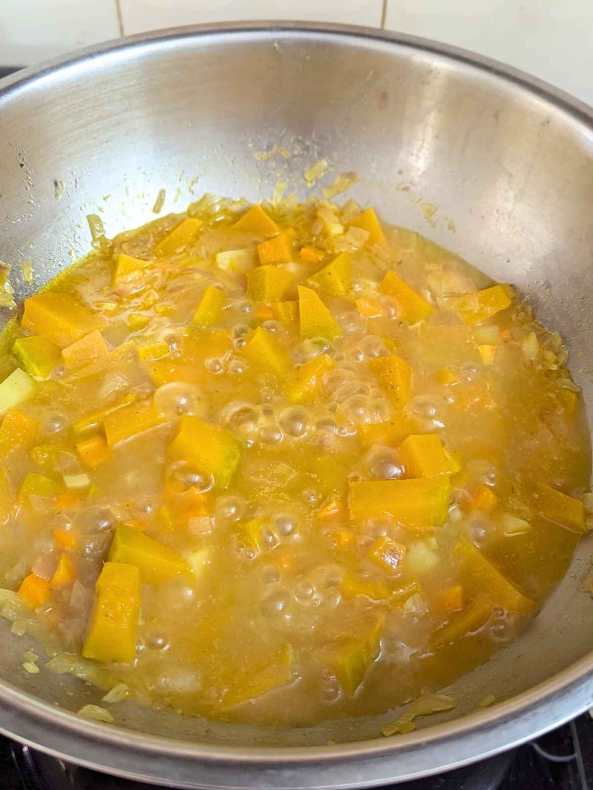 Simmer for about 20 minutes till butternut squash is cooked through and mushy.