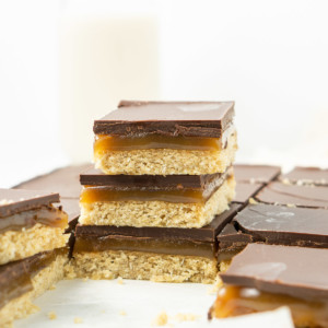 This version is made vegan with just a few simple swaps from the classic recipe and provides those key three layers. I’m so excited by this recipe as caramel slice is something that I didn’t think I’d ever be able to eat again since not being able to eat dairy.