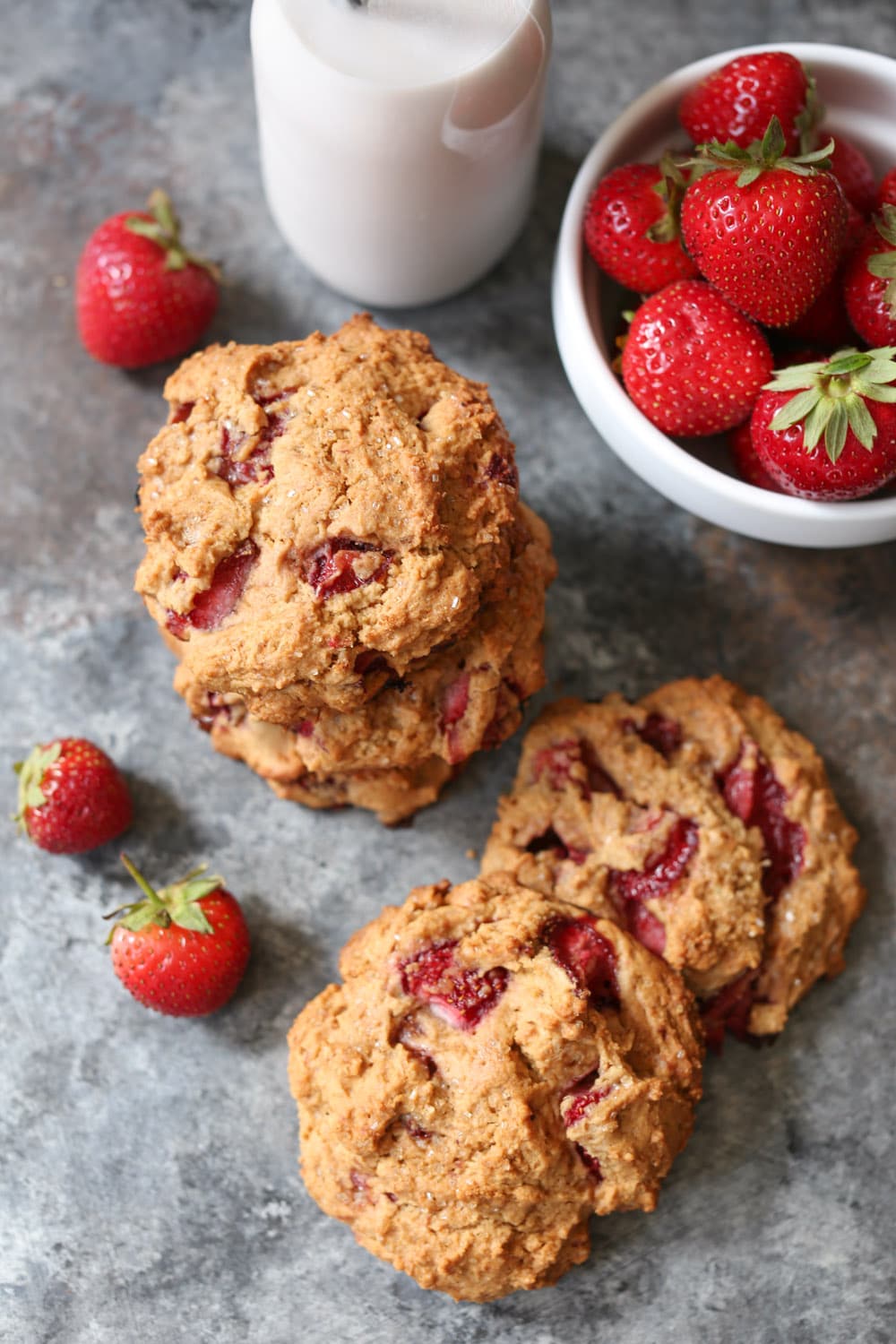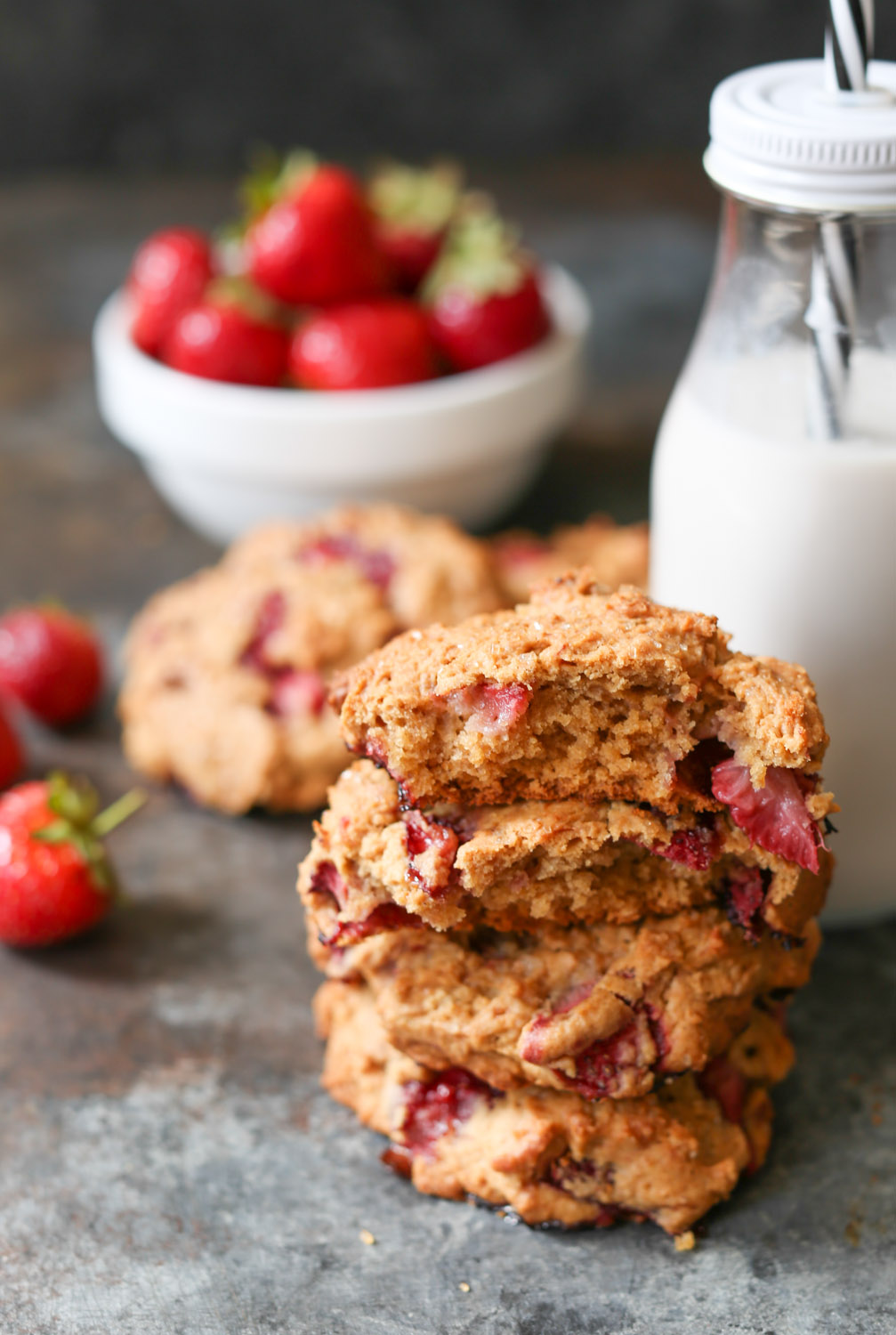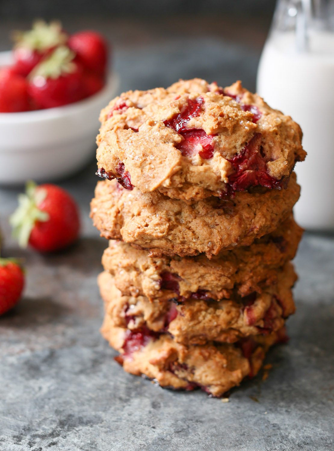 These sexy Strawberry Scone Cookies come to you courtesy of my talented friend Christina’s latest book Sweet & Simple. Christina writes one of my go-to blogs, Dessert For Two, and she’s one of the few people that’s capable of getting me excited about baking. All of her desserts are small batch, which is awesome if you’re baking for kicks and not a crowd. (Let’s be real, no good thing has ever come of being home alone with a tray of leftover brownies.) Christina’s written…count it….THREE best-selling cookbooks, but I’m particularly fond of this one because all of the recipes are 100% idiotproof. As someone who spent a semester at Le Cordon Bleu sweating and crying over sugar roses and collapsed cakes, I deeply appreciate droolworthy desserts that fall on the anxiety-free side of the baking spectrum. Hallelujah.