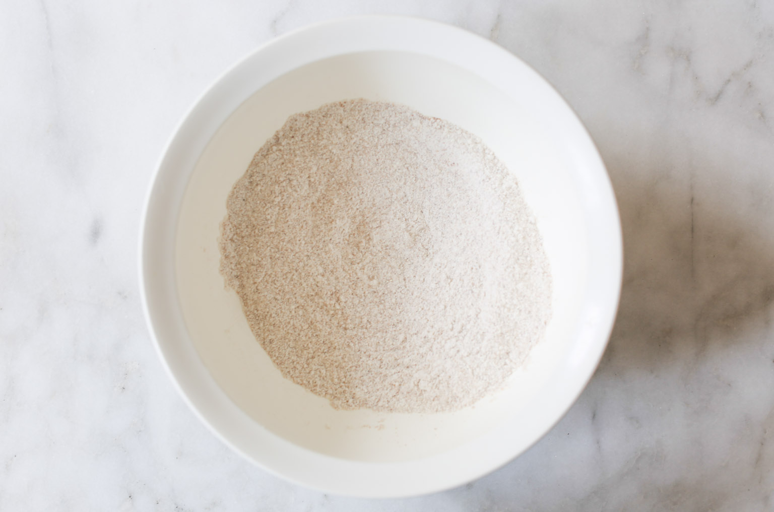 -In a medium-size bowl, combine the flour, baking powder, salt, and sugar. Stir with a fork until well blended.