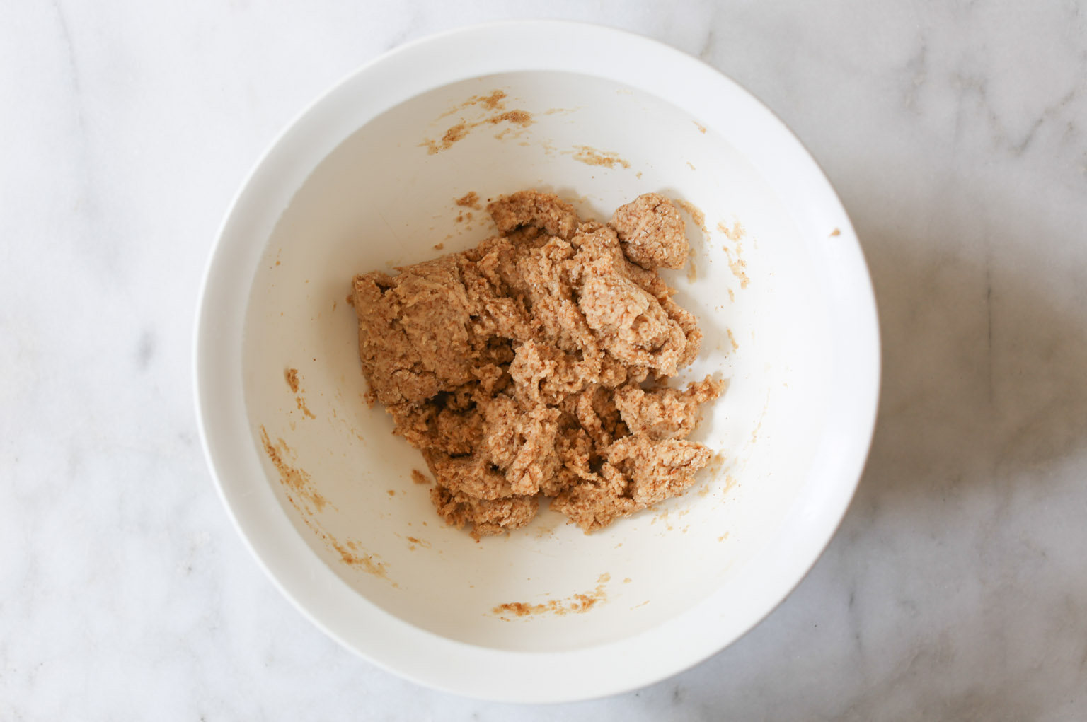 -Next, add the butter and cut it into the mixture using two knives or a pastry blender. Work the butter in until it’s evenly dispersed and is smaller than peas.