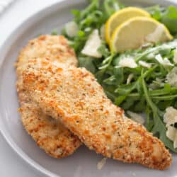 I grew up eating chicken cutlets weekly, like many other Long Island Italian families; in fact, it was always my favorite night of the week. It’s such a simple meal and they are kid friendly (my whole family loves these), easy to make, and great leftover. I have even eaten them cold right from the fridge!