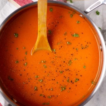 It is rich and creamy, yet doesn’t contain oodles of cream. Check out the detailed recipe to find the trick for the creamiest tomato soup without adding cream.