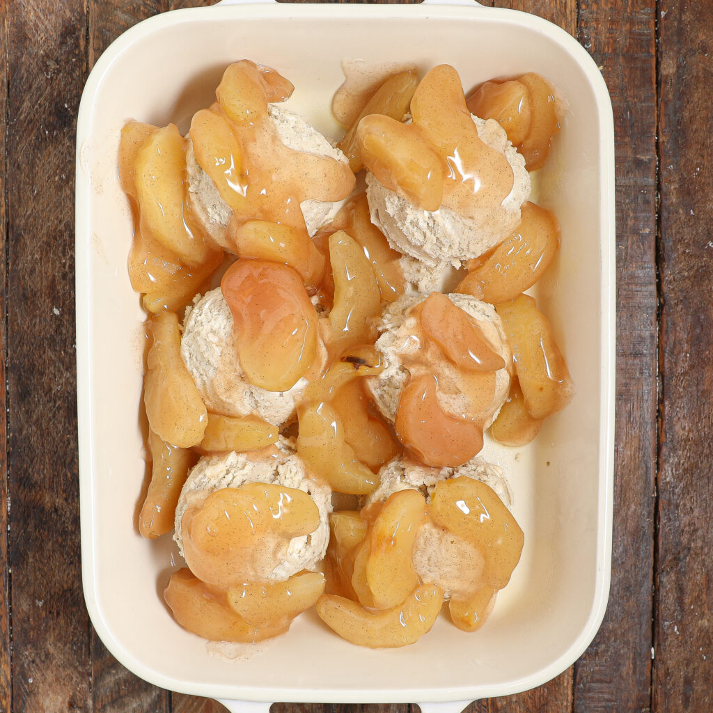 Top the biscuits with apple pie filling and bake for 20 minutes. Remove from the oven.