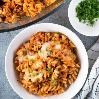 Our favorite Pasta Bake – tangy tomato sauce, spicy Italian Sausage, and lots of cheese together make this baked pasta dish delicious and super satisfying.
