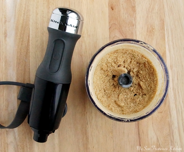- Use a KitchenAid hand blender or food processor to crush the graham crackers and mix the crumbs with the oats.