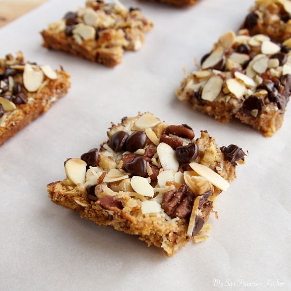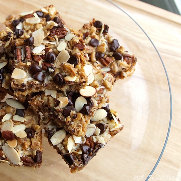 Have you ever made something and realized a few hours later you should have made more? I hate when this happens! I made these nutty coconut bars and my husband and I ate every single one in less than a few hours. He doesn’t even like sweets very much, so I was surprised at how much he liked them. I thought they would last at least a few days!! Can you say, addicting? I can’t believe how good these are…I mean, not-being-able-to-stop-eating-them good. I actually never used to like coconut, but lately I have been using it in my recipes a lot! The combination of chocolate, coconut, pecans, walnuts, sliced almonds, and graham cracker crumbs made these bars heavenly. I used my KitchenAid hand blender to blend up the graham crackers, which was very easy. Are you making any bars for your holiday baking this year? These are definitely my new favorite, and I plan on making them after the holidays too! Actually, I am making more today to snack on during my finals studying! I have two finals tomorrow, pharmacology & pharmaceutical chemistry. Unfortunately that isn’t the end before Christmas break, I still have one more big exam next week, but the end is near!! What kind of baked goods is everyone making for the holidays?