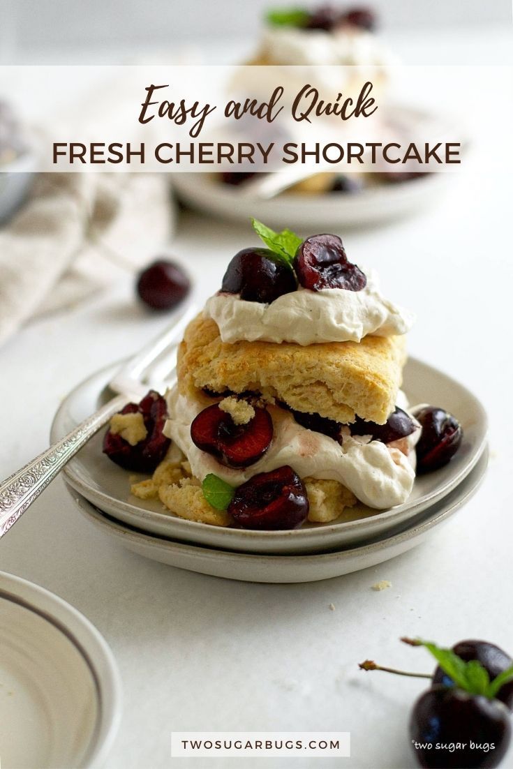 - To assemble the shortcakes: slice the vanilla biscuits in half and place on half on a plate cut side up. Place a dollop of vanilla whipped cream on top of the bottom biscuit, followed by a generous scoop of the cherries. Then top with the other half of the biscuit, another dollop of whipped cream and a few more cherries on top. Garnish with a sprig of mint, if desired, and serve immediately. The order of the cherries and whipped cream isn’t overly important ~ if you prefer to layer cherries and then the vanilla whipped cream, that’s just fine!