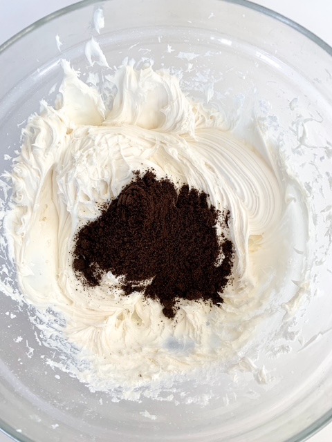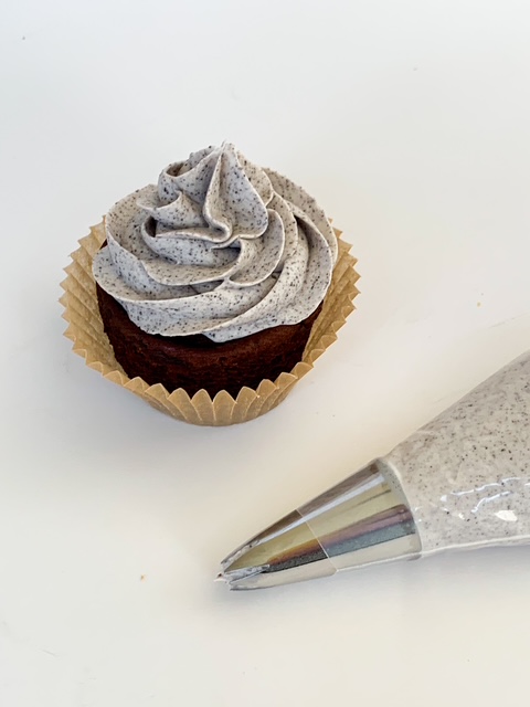 Take 7 cookies and place in a food processor. Pulverize until you have very fine crumbs. Stir in 3 or 4 TB of the cookie crumbs into the frosting until combined.