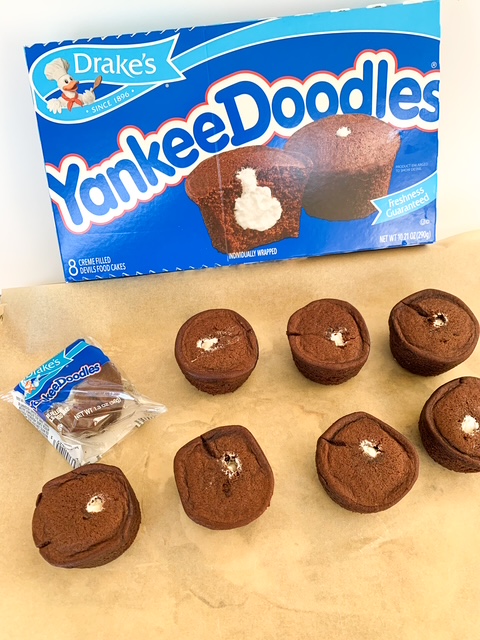 - Unwrap the Drake’s Cakes Yankee Doodle Cakes.
