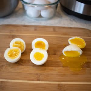 Now there are infinite ways to cook boiled eggs but the 3 versions that we go through here will satisfy most situations and needs. The procedure for cooking the eggs is all the same. The only thing that changes is the time you set the Instant Pot to.