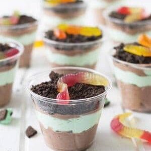 Cover your dirt cups and store them in the fridge for up to 5 days. The Oreos may get soggy and the worms will get hard in the fridge, so if you think you’re going to have leftovers you might want to wait to add the toppings right before enjoying your dessert.