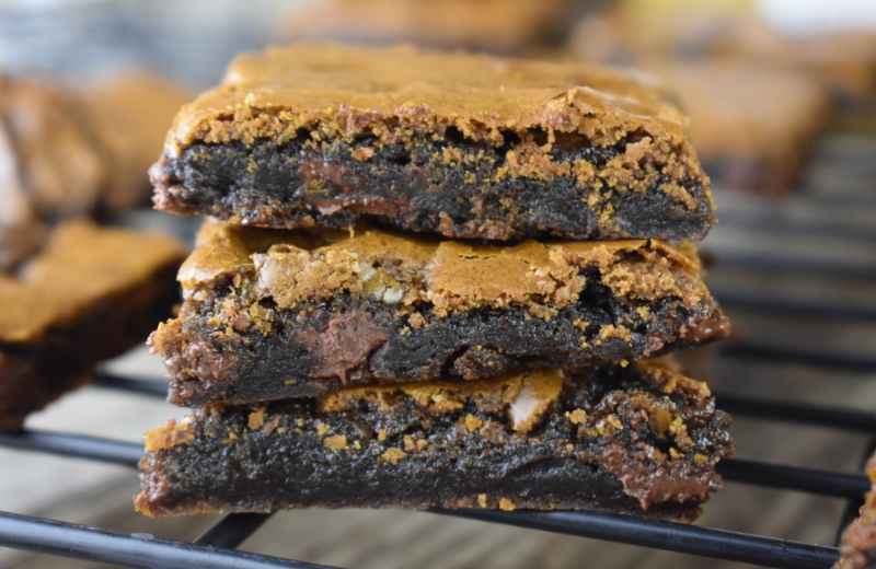 This chocolate chip molasses bars recipe originates from Farm Journal: Homemade Cookies Cook Book.  It’s an oldie but goodie from mom’s bookshelf.  Our dad’s favorite Chocolate No Bake cookies come from this same book.