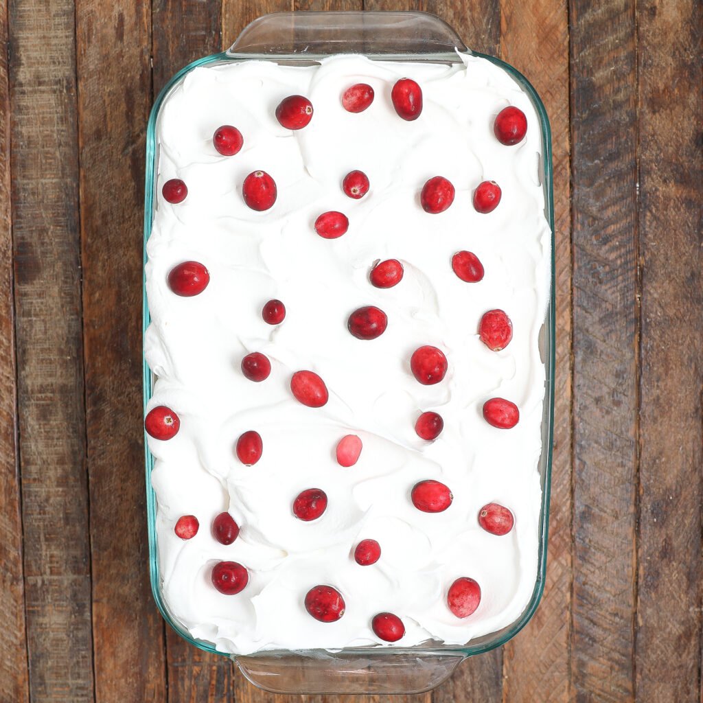 - Before serving, top with whipped topping and cranberries!