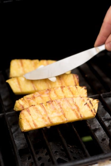 • Carefully place the pineapple onto the grill and allow each side to grill for about 5 minutes.