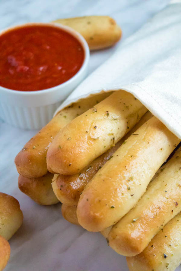 – Breadsticks are best on day 1 but can be stored in an airtight container at room temperature for about 1-2 days. You can reheat in the microwave for a softer texture, or in the oven if you want the outside to be crunchier.