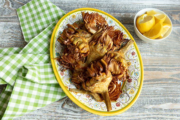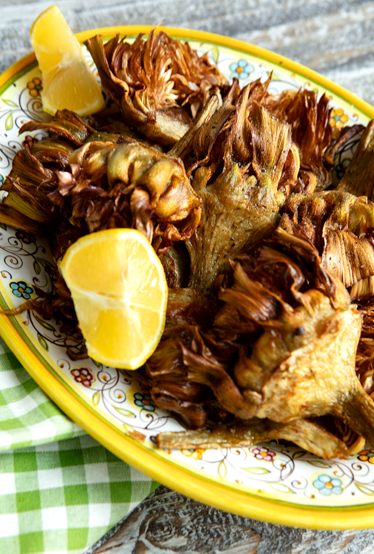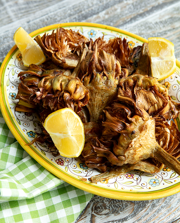 A specialty of the Jewish quarter in Rome, these crispy, brown artichokes are a spring specialty.