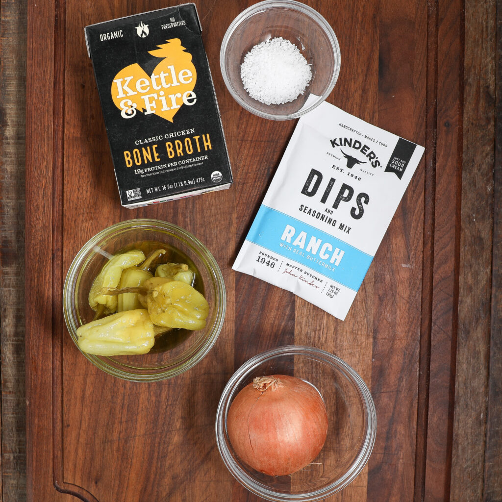 • 6 pepperoncini peppers plus 1/3 cup pepper juice