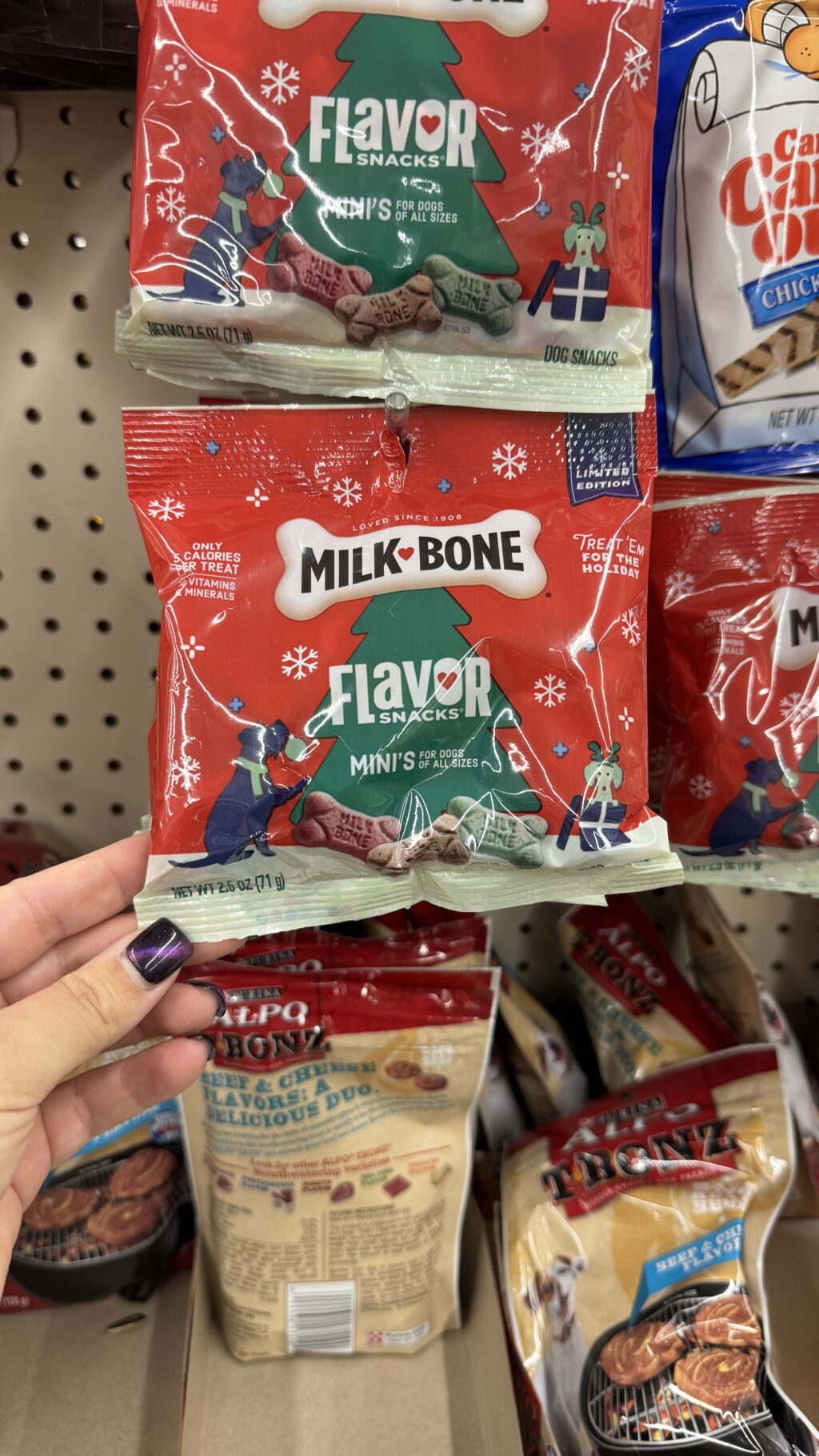 Spread a little holiday cheer to your pups with these Milk Bone Holiday Dog Treats that Dollar Tree is selling just for the holidays. These would be such a cute stocking stuffer idea for your dog.