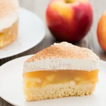 The highlight is the layer of slightly sweetened whipped cream with lots of cinnamon sugar on top. I usually bake the apple cinnamon cake in a small 8-inch/20-centimeter springform pan because it becomes really high. Alternatively, I have also noted the recipe’s ingredient amounts for the standard 10-inch/26-centimeter form.