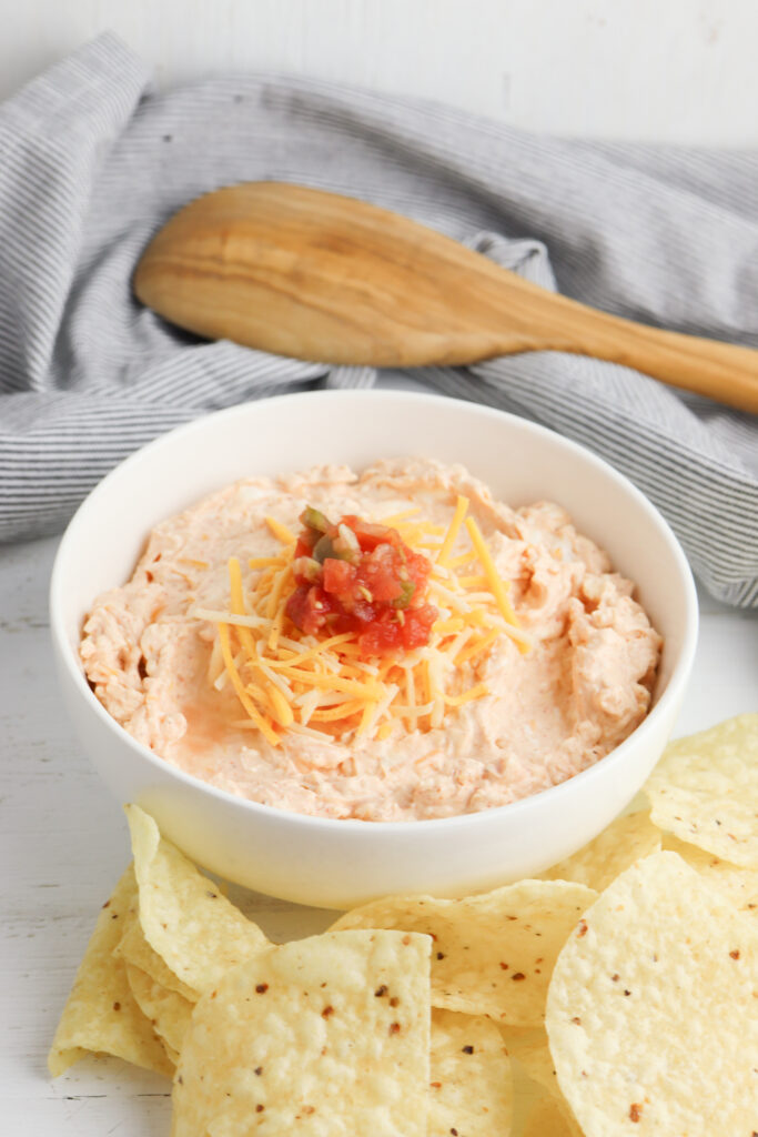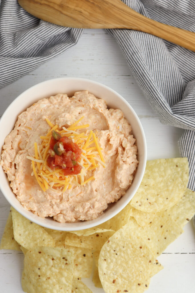 Top your dip with favorite taco toppings like black olives, diced red onion, chopped green onions, or diced bell peppers. For a fun and super simple twist, sprinkle a bit of hot sauce or add a dollop of guacamole.