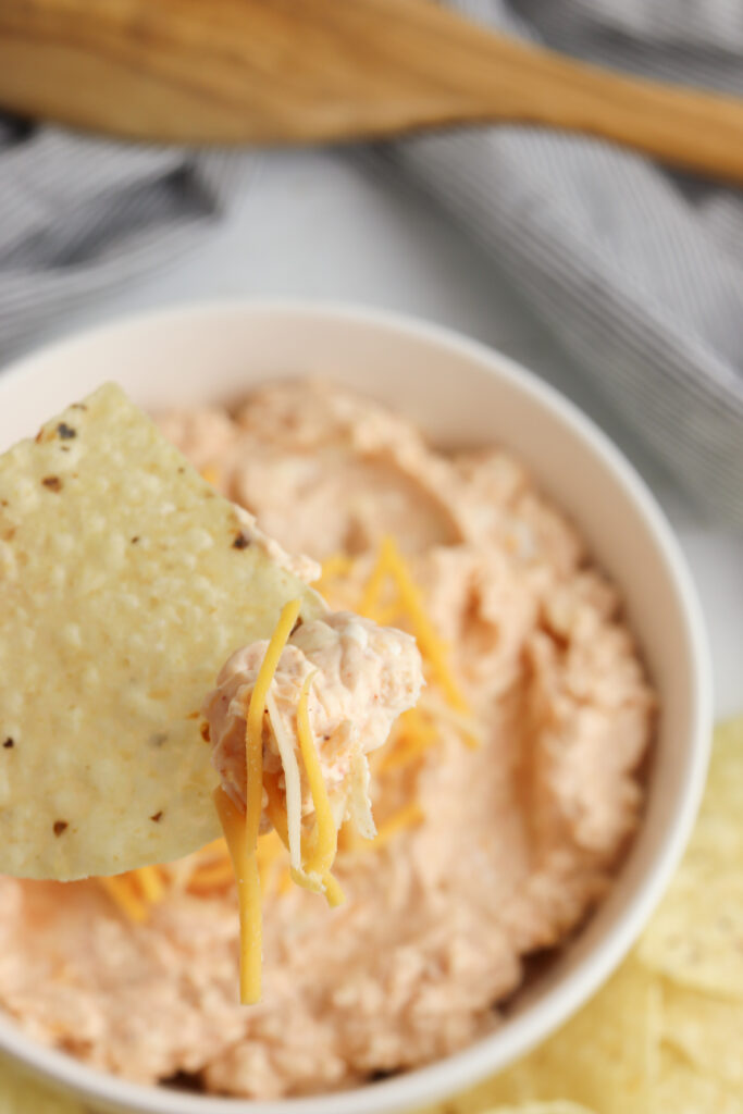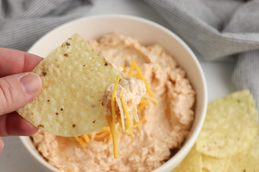 Stored properly, the dip will stay fresh for 3-4 days in the fridge. If preparing for a party, cover the dish tightly with plastic wrap until ready to serve. Even though the dip will stay good for 3-4 days in your fridge, I’d still recommend making it no more than 1 day in advance of your party so that it tastes the best that it can.