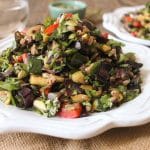 A mix of five different grilled vegetables, baby lettuces, farro, and toasted pepitas tossed in a simple balsamic vinaigrette, this summery salad is literally bursting at the seams with fresh flavor and texture. It’s light, yet satisfying, and in addition to its sexy appearance, it also boasts some pretty serious nutritional benefits. Thanks to the fiber, antioxidants, and vitamin C it’s packing, you can look forward to improved digestion, decreased cancer risk, and an increase in your skin’s general glow. Exciting!