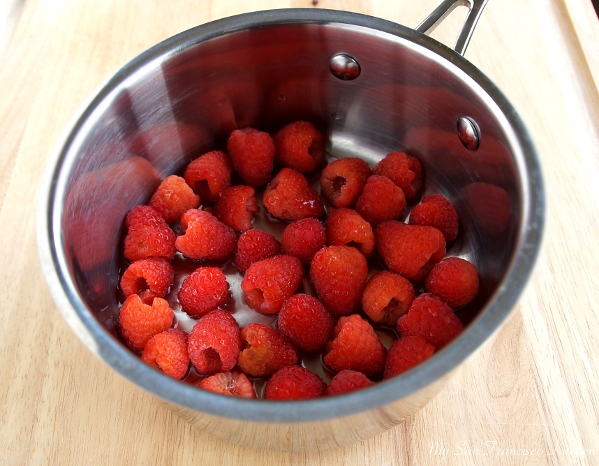 - In a small saucepan over low heat, add raspberries and sugar.