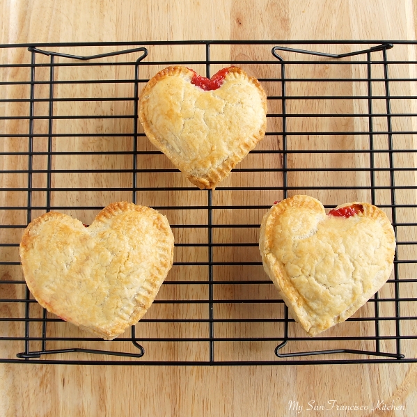 When I went to SoCal a few weeks ago to visit my family, my best friend Shannan gave me this super cute heart-shaped pocket pie mold. This was the perfect gift since Valentine’s Day is just around the corner! I tried it out the other day and made these delicious hand pies filled with fresh organic raspberries. It is not only for desserts, as you can also use it to make mini calzones and other pocket pies! These raspberry-filled hand pies have a flaky, buttery crust on the outside and a tart raspberry filling (you can control how sweet you want it by adding more or less sugar before you fill them). I used my flaky pie crust recipe for the crust, which worked great. I love Valentine’s Day, because it is another one of the holidays where you get to eat all of the chocolate and baked goods you want. Everything in moderation, right? These taste great with vanilla ice cream – yum!