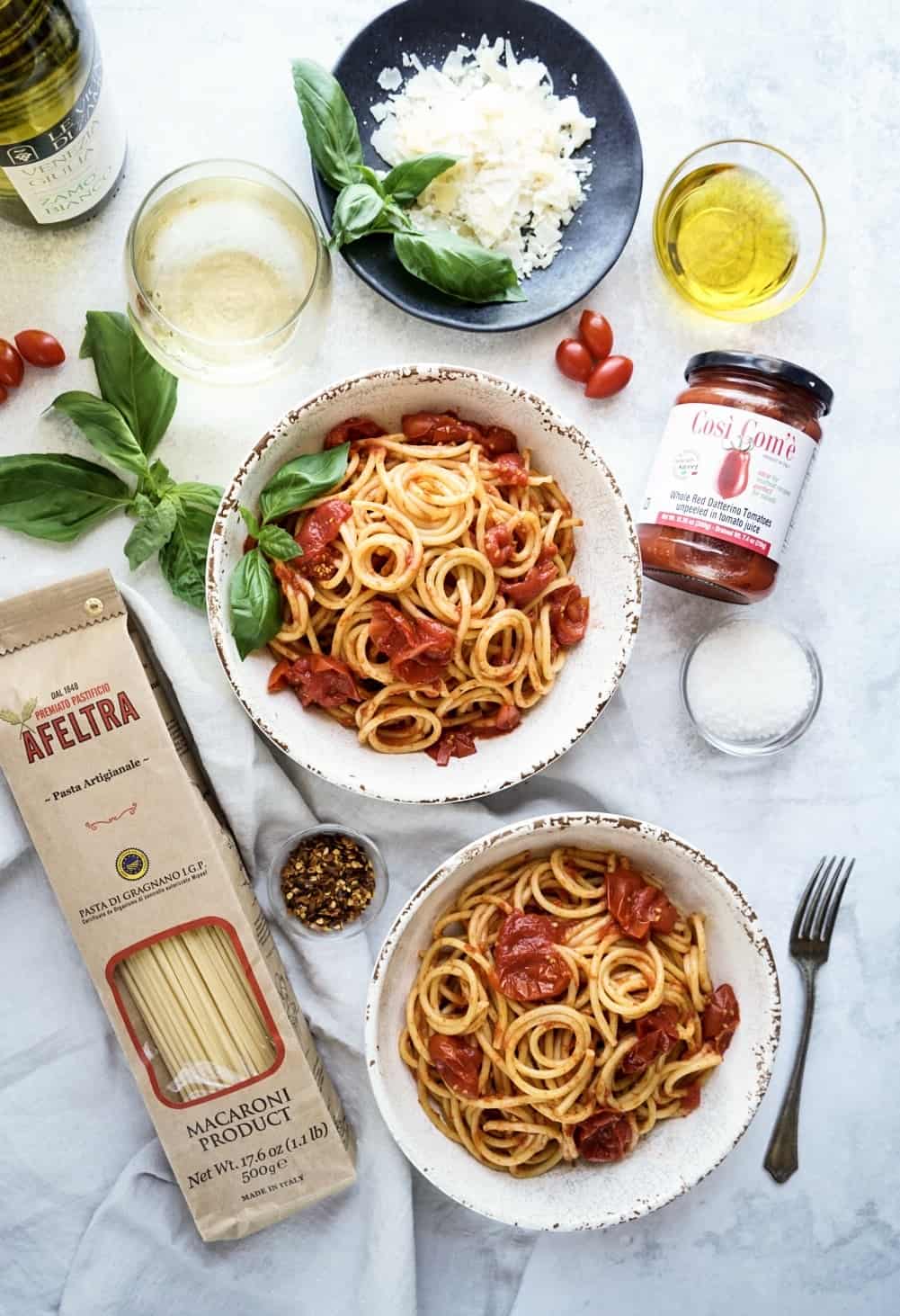 I was recently invited to dine at La Pizza & La Pasta in Eataly Chicago to experience some authentic Italian pasta.  Let me tell you, I definitely felt the magic when that bowl of Lo Spaghetto al Pomodoro that arrived at my table! Eataly’s authentic Italian dishes always hit the spot when I’m craving a big bowl of pasta, and this time was no exception. The highlight of my night was when that first noodle twirl went in my mouth. It was so simply delicious! I couldn’t wait to try and recreate this magical authentic Italian dish in my home for some good friends!