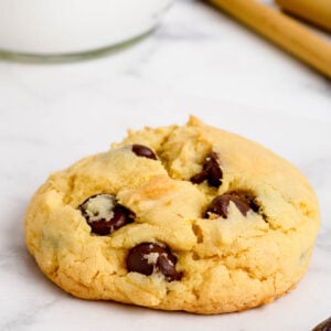 If you’re a true chocolate lover, use a chocolate cake mix instead of yellow cake mix and add white chocolate chips in addition to the semi-sweet ones for an indulgent double chocolate experience.