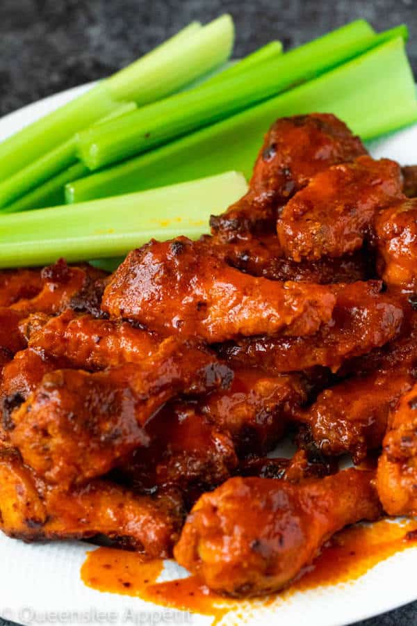 Spicy, irresistible and addictive, these wings are nice and crispy on the outside but so juicy and tender on the inside! Serve them with a side of blue cheese dip and celery sticks and watch the entire plate disappear before your eyes!