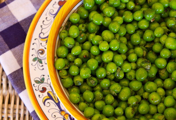 When vegetables are very fresh, I find it best not to do too much to them, but instead allow the fresh, natural sweetness shine. I barely blanched my peas, but if your peas are very small, you do not even have to cook them. Instead, simple toss them with the vinegar, oil, and mint, then season with salt and pepper.