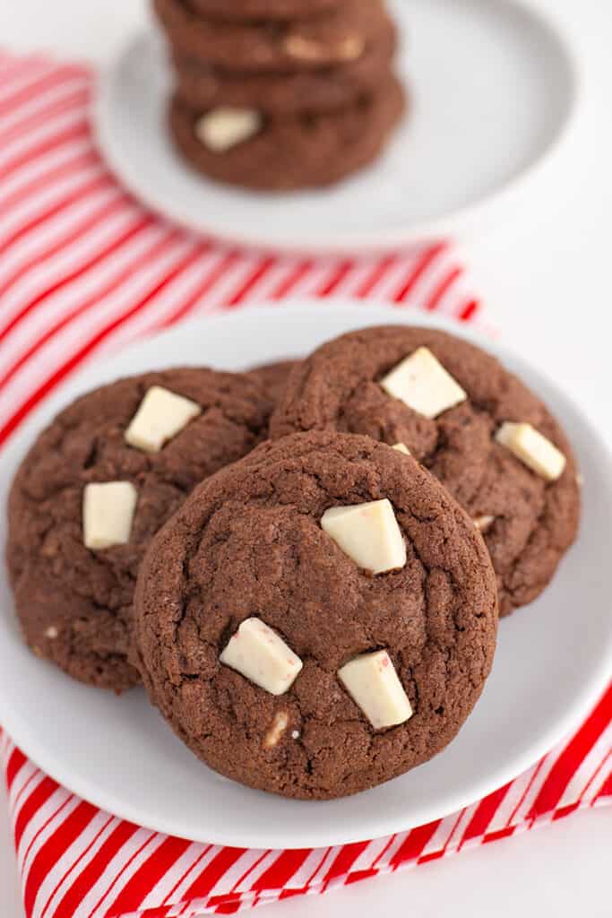 These Chocolate Peppermint Cookies are a great Christmas cookie recipe to have in your recipe box for your next holiday platter. The cookies are packed full of chocolate flavor with a hint of peppermint and topped with chunks of white chocolate peppermint chips. If you love a soft, chewy cookie, this is the recipe for you.
